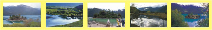 莊稼,湖邊山腰上是莽莽森林,再往上是艷麗的杜鵑花和灌木叢林,而山頂則是皚皚白雪。座落在山林中的波密縣,空氣清新,十分迷