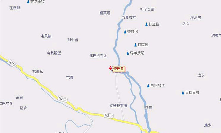 洋河發(fā)源于米拉山,東流300多km,于林芝鎮(zhèn)南約40公里 處匯入雅魯藏布江。) 過工布江達后,在尼洋河支流巴河橋頭分路