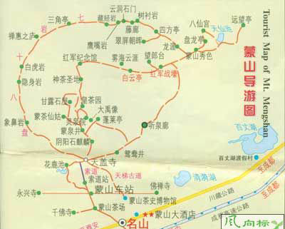 蒙頂山景區(qū)由蒙山和百丈湖兩個(gè)主景區(qū)組合而成,是四川首批省級(jí)風(fēng)景名勝區(qū)之一。座落在名山縣境內(nèi),距成都110公里,離雅安市15公里,318國(guó)道縱貫景區(qū),成都-雅安高速公路兩條引道與蒙山和百丈湖直接相連,交通十分方便。 蒙山,橫亙于名山縣城西北側(cè),山勢(shì)北高南低,呈東北一西南帶狀分布,延伸至雅安境內(nèi)。山體長(zhǎng)約10公里,寬約4公里。蒙頂五峰環(huán)列,狀若蓮花,最高峰上清峰,海拔1456米。從蒙頂西眺可見(jiàn)峨眉、瓦屋、周公諸山。向東俯視,原野平疇,山巒起伏,溪澗縱橫,風(fēng)景如畫(huà)?,F(xiàn)存建筑古剎永興寺、千佛寺、凈居庵等寺廟座落于茶園翠靄茂林間,紅墻梵宇,別增情趣。 蒙山因“雨霧蒙沫”而得名,這里因常年雨量達(dá)2000毫米以上,古稱(chēng)“西蜀漏天”。西麓雅安有“雨城”之名,又有“雅安多雨,中心蒙山”之說(shuō)。雨多而形成云多、霧多的景象。春夏秋季,從山巔俯瞰,云霧飄浮于山嶺溝壑之間,小山浮露,恰似仙山瓊閣。冬天從山下仰觀,冰絲雪掛,山崗云繞,亦真亦幻。日出時(shí)金光漫射,紅云飄浮。傍晚遠(yuǎn)望名山、雅安兩城萬(wàn)家燈火,如繁星落地,景象萬(wàn)千。 蒙山是中國(guó)種茶業(yè)和茶文化的發(fā)祥地之一,早在兩千多年前的西漢時(shí)期,蒙山茶祖師吳理真好開(kāi)始在蒙頂馴化栽種野生茶樹(shù),開(kāi)始了人工種茶的歷史。唐宋時(shí)是蒙山茶的極盛時(shí)期。從唐玄宗天寶元年(724年)被列為貢品,作為天子祭祀天地祖宗的專(zhuān)用品,在民間,蒙頂茶歷來(lái)被看作祛疾去病的神來(lái)之物。因此,歷史悠久的蒙頂茶被稱(chēng)為“仙茶”,蒙山被譽(yù)為“仙茶故鄉(xiāng)”。